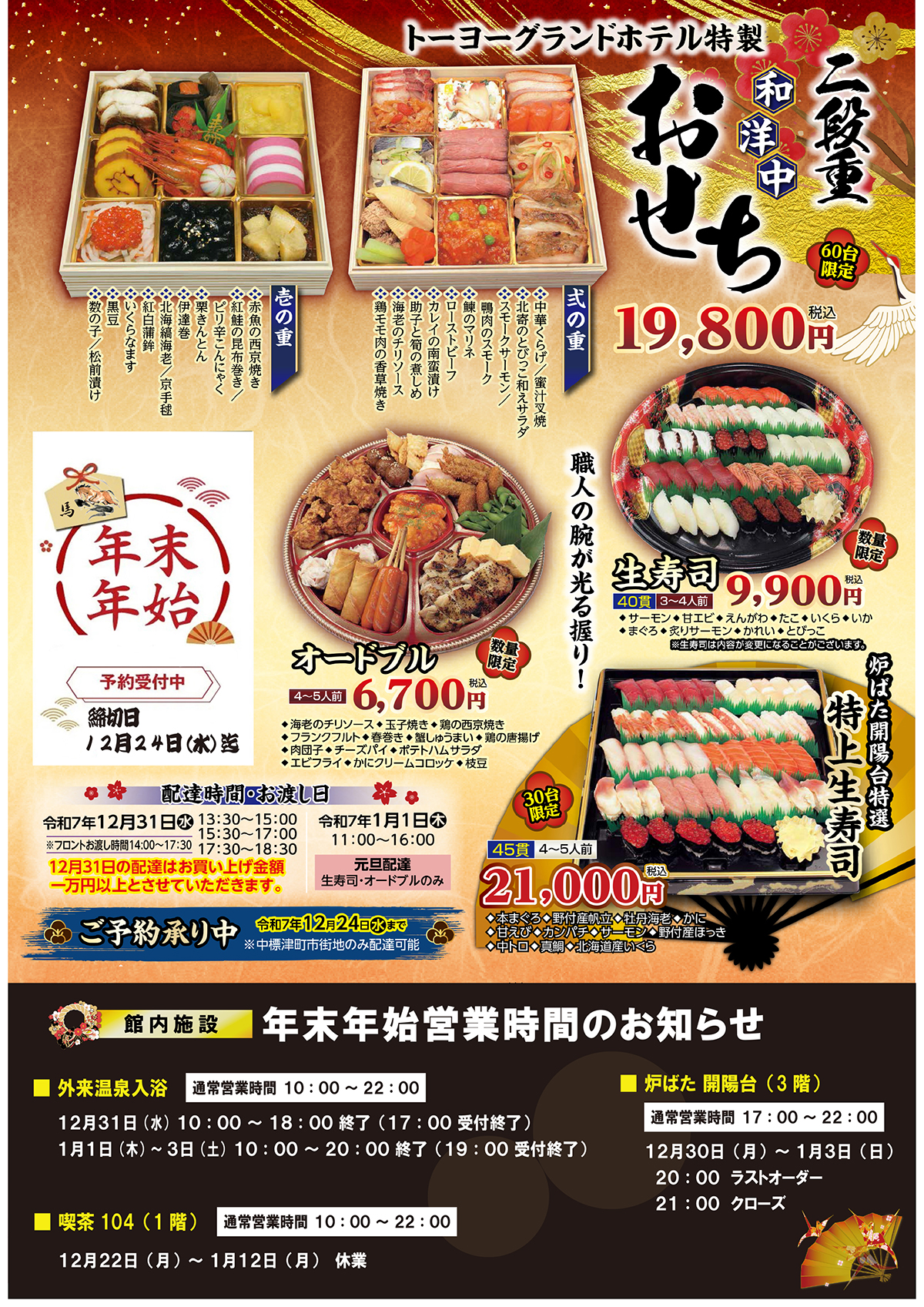 『特製おせち販売のご案内』と『年末年始の営業時間のお知らせ』